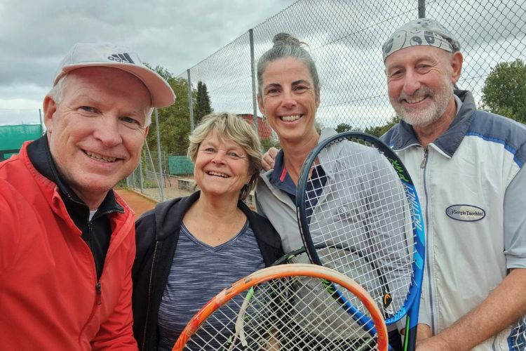 Zehn Mitglieder – fünf Damen und fünf Herren – stellten sich der sportlichen Herausforderung. In fünf Runden gemischter und zugeloster Doppel ging es Schlag auf Schlag. Das Besondere: Jede Runde bestand aus zwei Matches – ein klassisches Doppel mit Tennisball und ein zweites mit Softball im Kleinfeld. Gespielt wurde jeweils auf drei Gewinnpunkte.
