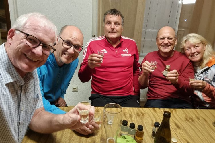Der gemütliche Ausklang in kleiner Runde hatte es in sich: Dank seines von Stefan gestifteten Hauptpreises wurde vielfältig und herzlich „geschnapselt“ – ein gelungener Abschluss eines wunderbaren Tages!